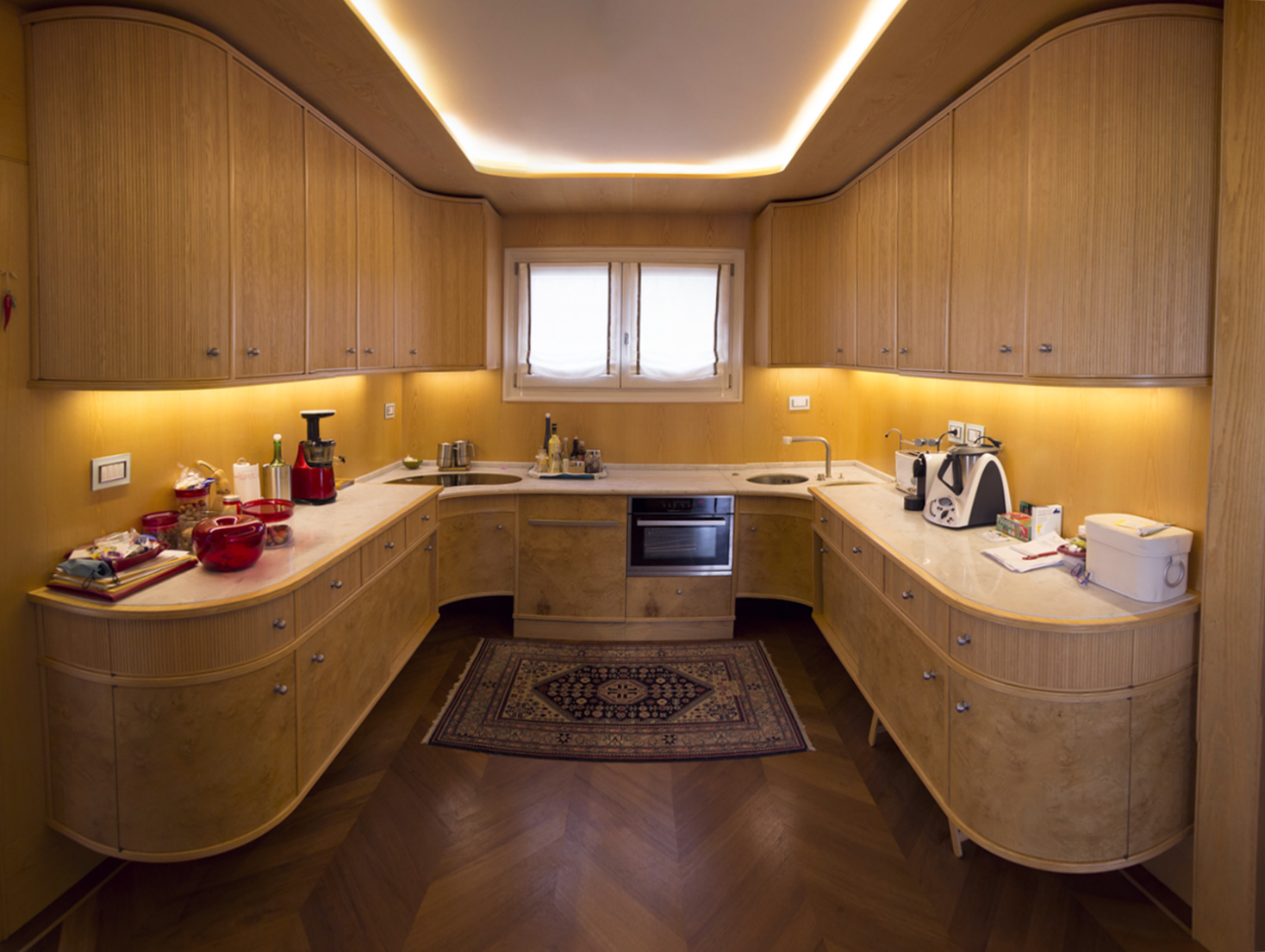 Arredo interno per una nuova costruzione a Lignano, utilizzando il teak, il frassino e la pergamena