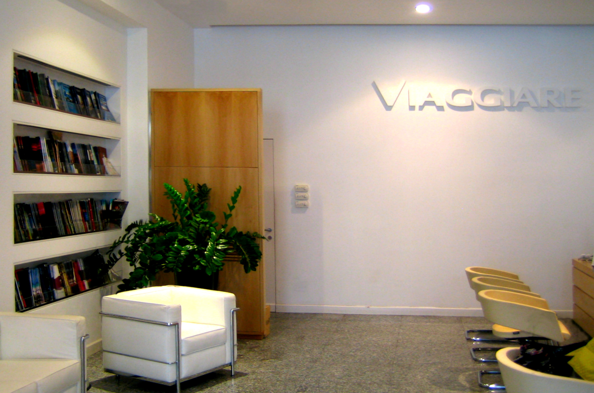 Abbiamo realizzato i mobili contenitori sul retro, i divisori e i banconi reception.