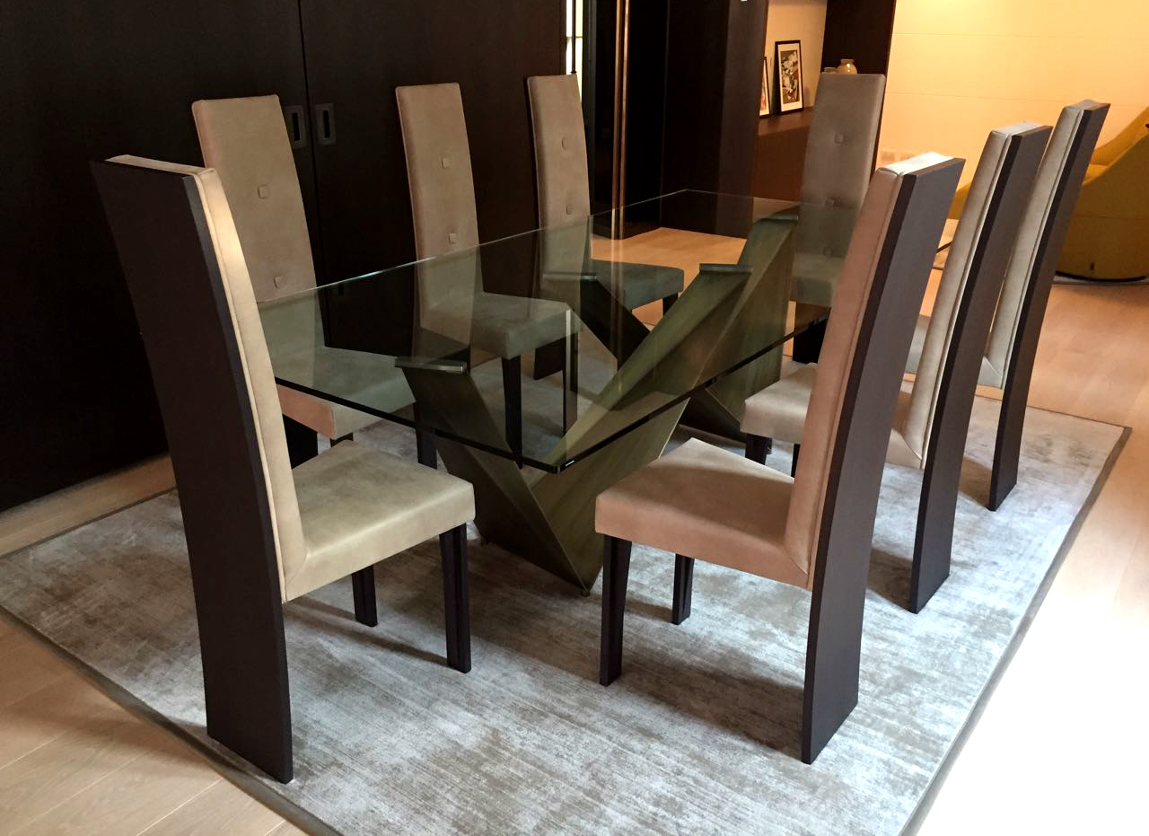 Il tutto è stato poi imbottito e rivestito con pelle Nabuk finitura seppia, già utilizzata per il divano esistente.